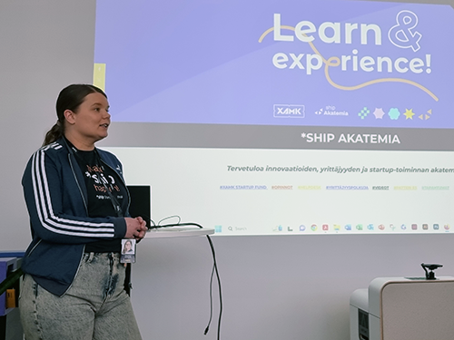 Opiskelijoiden yrittäjätarinoiden lisäksi Maarit Vahvanen (vas.) ja Minna Lehesvuori esittelivät Xamkin yrittäjyyden, innovaatioiden ja startup-toimintaan keskittyvää *Ship Akatemiaa, jonne kaikki opiskelijat ovat tervetulleita. Sieltä löytyy samanhenkisiä ihmisiä, joiden kanssa ja avulla on inspiroivaa kehittää omaa yritysideaa. *Ship Akatemia on yrittäjämäisesti toimiva ympäristö, jossa näkee aitiopaikalta, mitä tapahtuu Kymenlaakson ja Etelä-Savon startup-maailmassa.