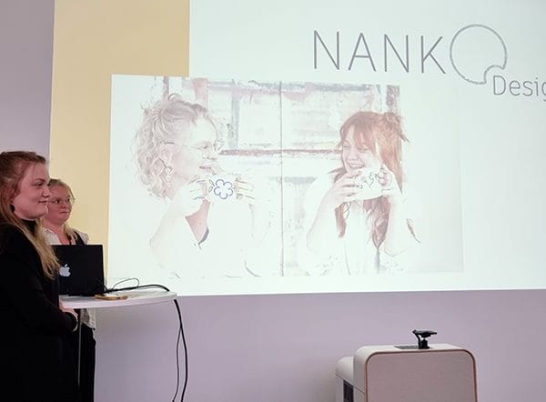 Tapahtumassa omaa yrittäjyyden aloitustaan avasivat keväällä 2024 sisustusarkkitehdeiksi valmistuvat Elina Remler ja Janita Pursiainen (alhaalla vas.). He ovat jo opintojen aikana tehneet useita opintojaksoja ja muita toimeksiantoja yhdessä, mikä on ollut luonteva lähtökohta yhteisen sisustusarkkitehtitoimiston perustamiselle. Yrityksen nimi on Nanko Design, ja siitä huokuu yrittäjien myötä hyvä fiilis, korkea laatu ja monipuolinen osaaminen.
