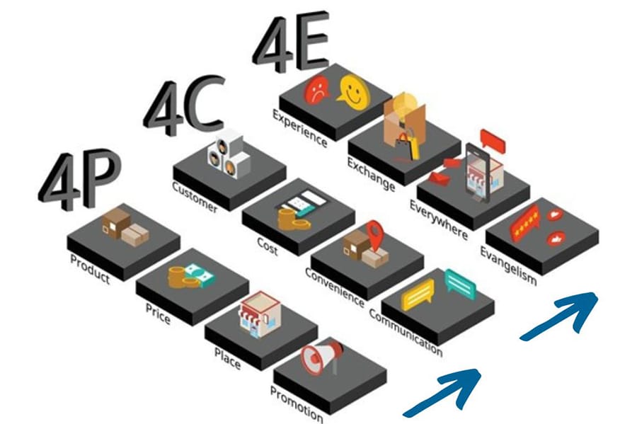 Sekä tuotekeskeinen 4P että palvelukeskeinen 4C ovat vieläkin paljon käytettyjä malleja markkinointistrategian suunnittelussa. 2010-luvulla on eri lähteissä kehitetty kokemuskeskeinen 4E-malli, jossa tuotteen korvaa Kokemus (Experience), hinnan korvaa Vaihtokauppa (Exchange), paikan korvaa Ekosysteemi (Ecosystem/Everywhere), ja markkinointiviestinnän korvaa Sitouttaminen (Engagement/Evangelism).