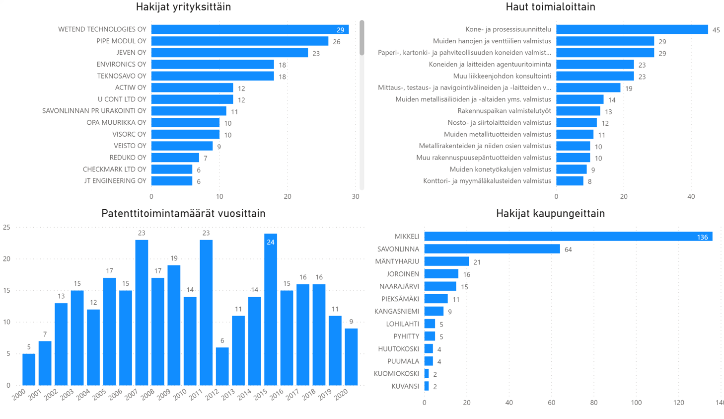 Patentointiaktiivisuus on laskenut Suomessa lähes vuosikymmenen, mutta koronavuonna 2020 aktiivisuus kasvoi. Tässä tilanteessa on mielenkiintoista vertailla maakuntia patenttidatan valossa.