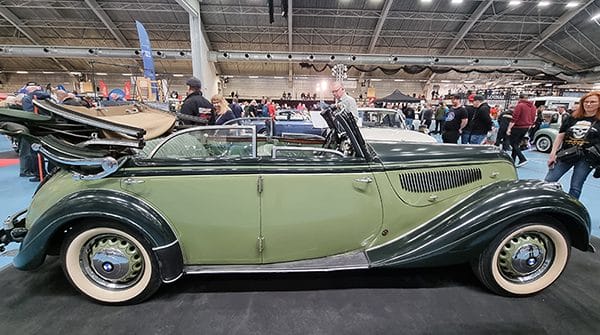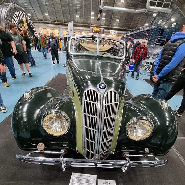 Näyttelyn ehkä vaikuttavin auto oli BMW Cabriolet 355, vuosimallia 1940. Tämä vihreä kaunotar oli suurin BMW:n ennen toista maailmansotaa valmistamista autoista. Sen ensiesittely oli vuoden 1938 Lontoon autonäyttelyssä. Auton moottorissa on kuusi sylinteriä ja tehoa löytyy 90 hevosvoimaa. Huippunopeus on tuon ajan autolle melkoinen, noin 145 km/h. Auto on myös käyntiominaisuuksiltaan erittäin hyvä ja tasainen. Kyseinen auto on Autenrieth-koritehtaan valmistama yksilö, jollaisia on valmistettu vain 40 kappaletta. (BMW 335 Cabriolet, vuosimalli 1940 s.a.)