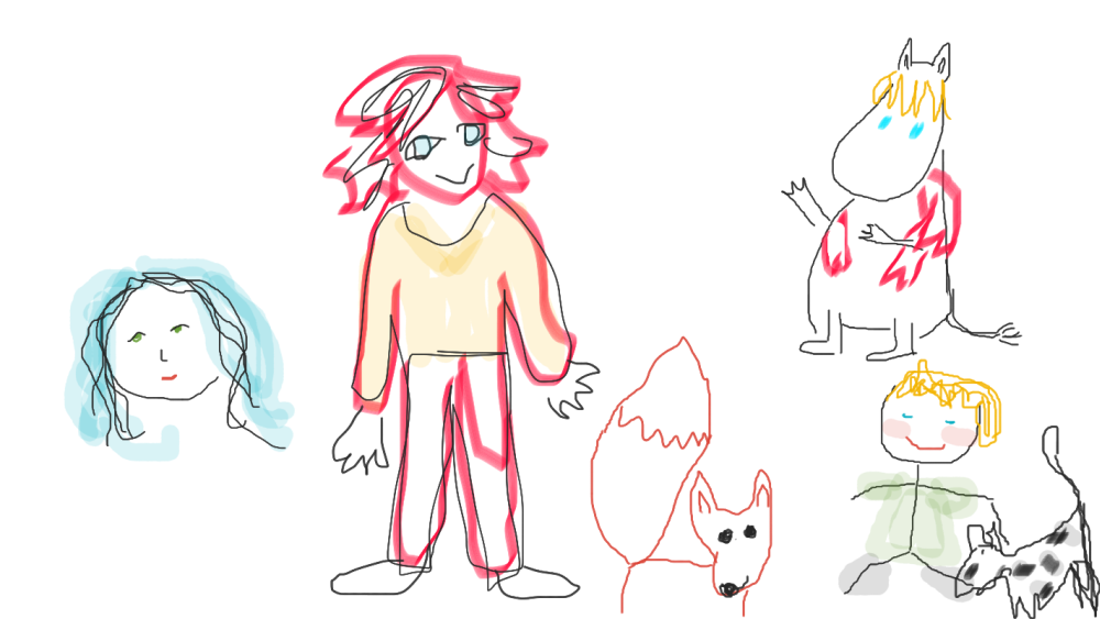Pyydä piirtämään ääriviivalla jokin täysin satunnainen vapaa muoto. Sitten pyydä lisäämän yksityiskohtia ja uusia muotoja kuvaan. Sitten lisätään kontekstia tai taustaa, missä tilanne tapahtuu?