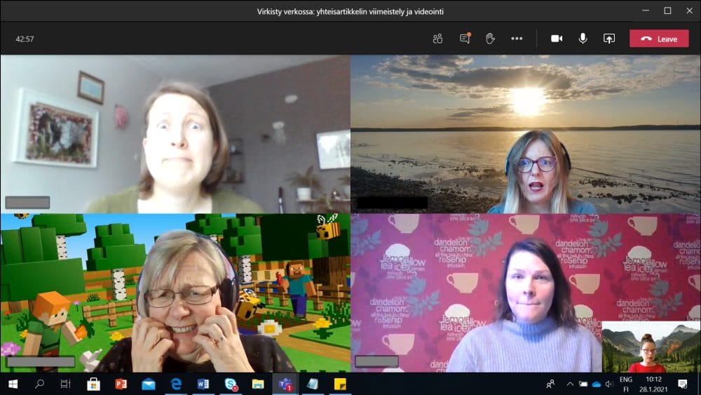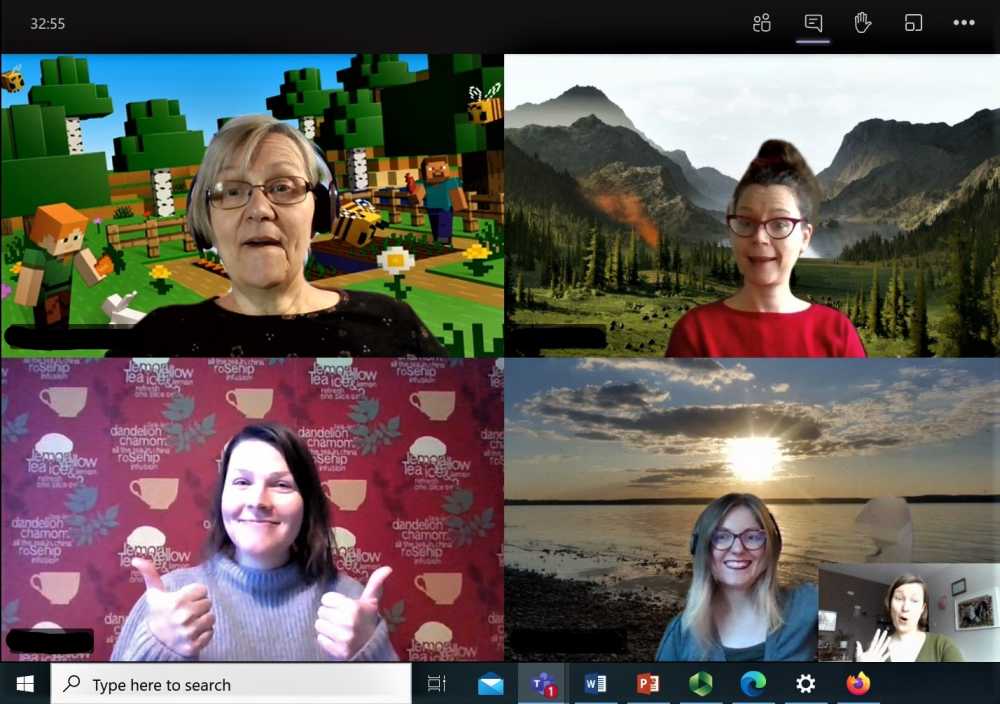 Kulttuurihyvinvoinnin tiimin hauska etäkokous syntyi luovien menetelmien kokeilusta yhdessä. Samalla jaettiin omaa osaamista kollegoille. Kulttuurihyvinvoinnin tiimi muodostuu xamkilaisista, jotka hyödyntävät hankkeissa tai opetuksessa taidelähtöisiä menetelmiä ja kulttuuria hyvinvoinnin edistämiseksi.