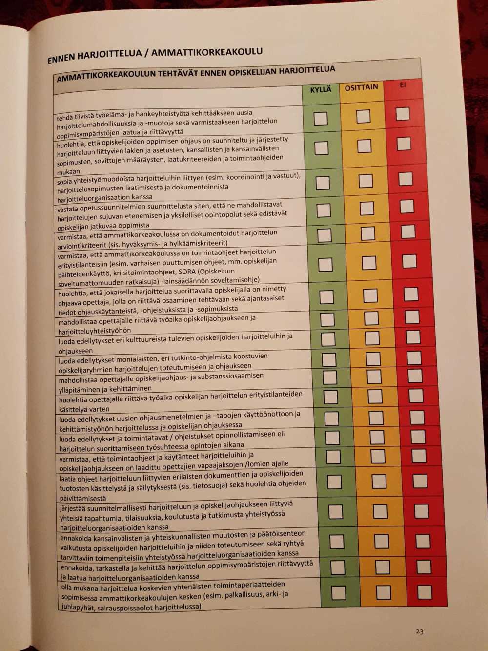 Ammattikorkeakoulun tulee seurata kansallisten ja kansainvälisten sosiaali- ja terveysalaa koskevien muutosten vaikutuksia opiskelijoiden harjoitteluihin ja varmistaa toimintaohjeiden ajantasaisuus.