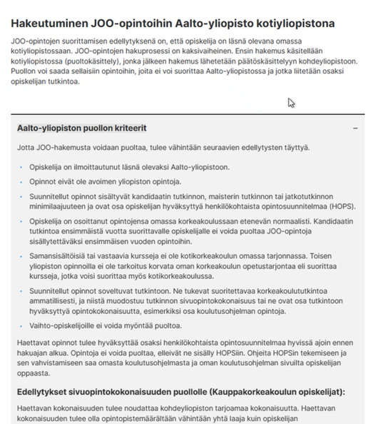 Opiskelija löysi suoritettavan Xamkin opintojakson Pulsen sivustolta Aalto-Yliopiston opiskelijoille Xamkin opintotarjontaa – Xamk, jolle sivulle opiskelija pääsi oman HOPS:nsa kautta kohdasta vapaasti valittavat opinnot. Reitti on opiskelijan kannalta itseasiassa suhteellisen vaivaton ja se on esitetty artikkelin lopussa olevassa kuvasarjassa. Mainittakoon, että tutustuessani itse Xamkin kurssitarjontaan kyseisellä sivulla olevan Study searchin kautta viikolla 9, oli haluoptiosta syksy 2024 (tai vuosi 2025) huolimatta näkyvissä vain kesäkaudella järjestettävät opinnot. Eli esimerkiksi omaani tulevan syksyn opintojaksoa ei haussa löytynyt. Opiskelijan tulee siis olla oikeaan aikaan liikkeellä.