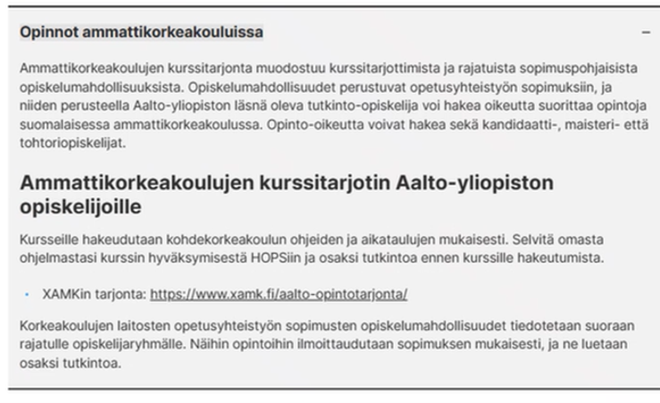 Lisäksi Xamk ja Aalto-yliopisto ovat mahdollistaneet toistensa opiskelijoille osallistumisen tietyille opintojaksoilleen. (Aalto-yliopiston ja Xamkin strateginen yhteistyö – Xamk)