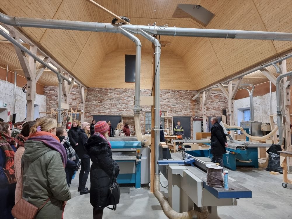 Kierros päättyi kahvitteluun ja keskusteluun materiaali- ja työvälinevaraston yläkerrassa sijaitsevissa toimistotiloissa. Restartin toiminnan näkeminen antoi opiskelijoille hyvän kuvan useita työntekijöitä työllistävän restaurointialan yrityksen toiminnasta. Muutamia Xamkin restauroinnin opiskelijoita onkin ollut Restartilla harjoitellussa ja myös valmistututtuaan työsuhteessa.